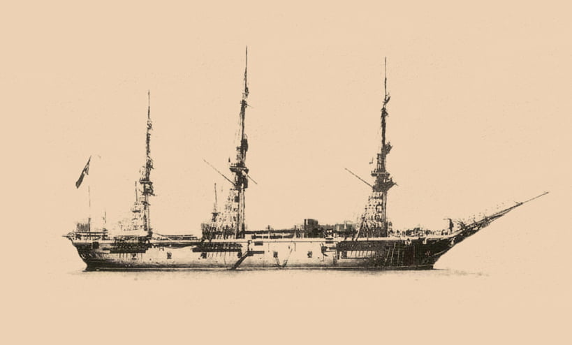 Ertuğrul Fırkateyni 14 Temmuz 1889'da İstanbul'dan hareket etti. Gemide 56’sı subay olmak üzere 609 kişi yer alıyor ve gemi komutanlığını Albay Osman Bey yapıyordu. İstanbul’dan yola çıkan Türk heyeti Süveyş kanalı üzerinden yoluna devam etmekteyken 28 Temmuz 1889'da gemi kanalın sığ sularında kuma saplanmış ve kanal idaresinin yardımıyla kurtarılmıştır. Fakat gemi iskeleye bağlıyken rüzgârın şiddetiyle ters yöne dönerek, sahile çarpmış ve dümen bodoslaması kırılmıştır. Bütün bunlar bir bakıma felaketin baştan habercisi gibidir ama gemi yine de yoluna devam etmişti.