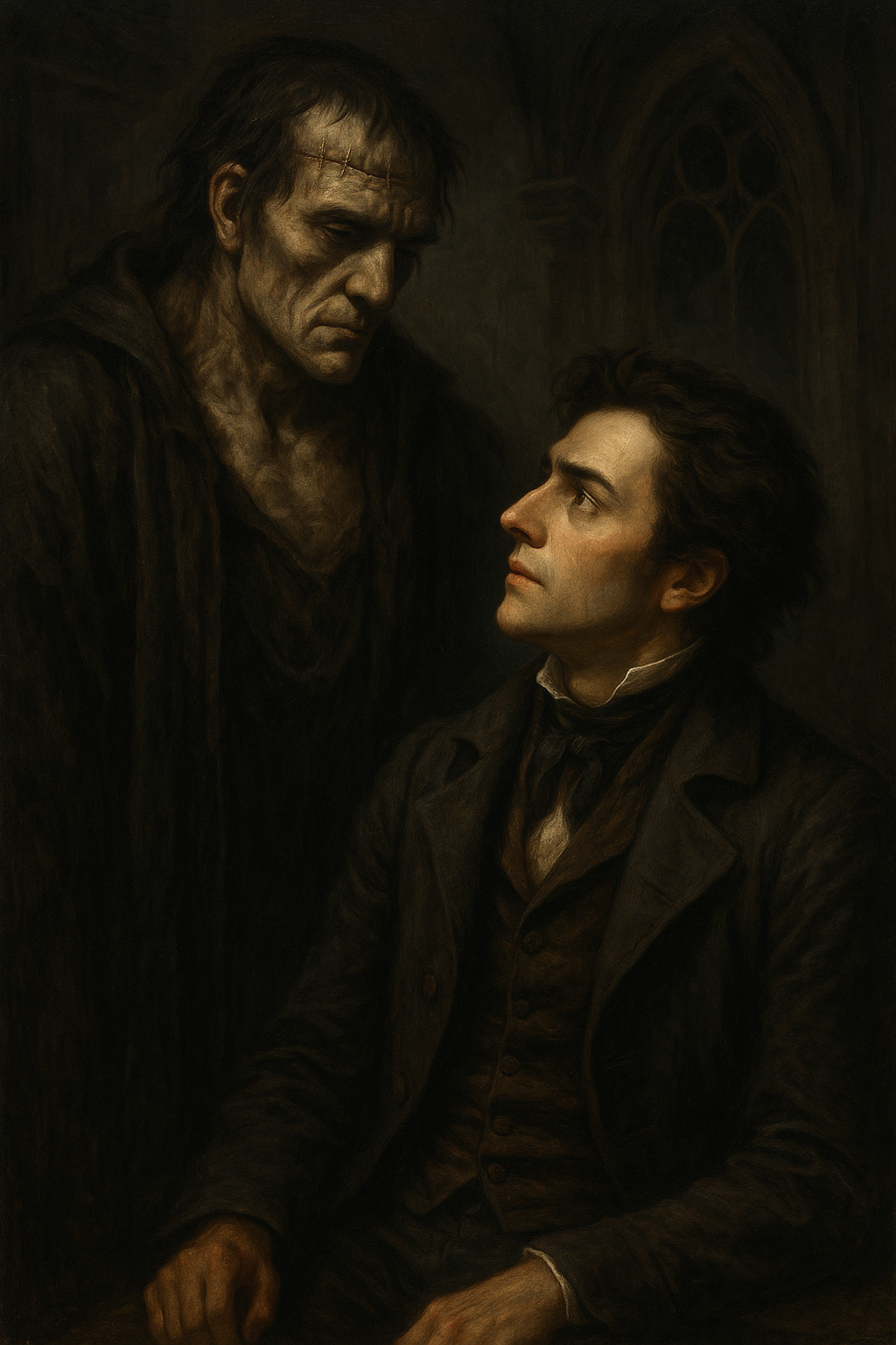 Kendi elleriyle şekillendirip hayat verdiği varlık, gece yarısı geçit vermez bir dağın sarp kayalıkları arasında karşısına çıkarak onunla dövüşmüştü. Cüsse olarak kendisinin iki katı olan bu canavarı alt etme şansı en başından beri yoktu. Dr. Frankenstein’ın o gece o kavgada verdiği mücadele; eserini oluştururken gölgesini ortaya çıkartıp onunla yüzleşen, böylece gerçek bir eser ortaya koyduğunu kanıtlayan her sanatçı kadar çetindi. Dr. Frankenstein’ın ebeveynlerinin bile doyuramadığı karanlık yanı, gölgesi olan yaratık bunu şöyle itiraf ediyordu: “Peki ya benim dostlarımla akrabalarım neredeydi? Bebekliğimde beni gözeten babam, gülücükleri ve okşayışlarıyla beni sarmalayan annem olmamıştı. Olduysa da geçmişim bir karanlıktan, hiçbir şeyi seçemediğim bir boşluktan ibaretti.” Neydi bunların anlamı? Kimdi o? Neydi? Nereden gelip nereye gidiyordu? Kaderi neydi? Bu soruları cevaplayamıyordu.