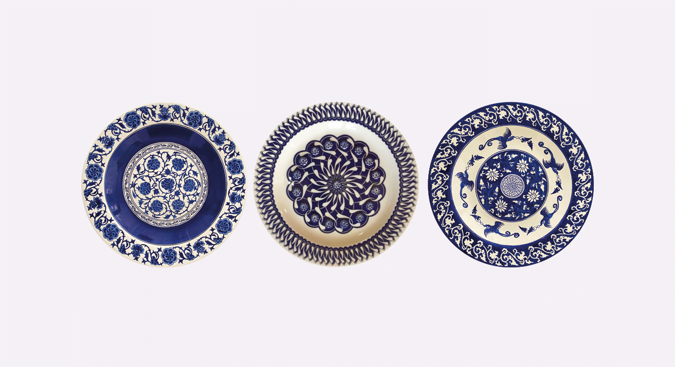 Yüksek lisansta bir dersim için Çin hanedanlarıyla alakalı bir konu seçmiştim. O dönemde yapılan mavi-beyaz porselenlere hayran olmamak elde değil… Çalıştığım son birkaç işim bu araştırmam sonucunda ortaya çıktı. Hanedanlıklar dönemine ait motifleri, tasarım anlayışını ve renkleri göz önünde bulundurarak çalıştım ve çalışmalarıma devam ediyorum. Topkapı Sarayı müzesinde örnekleri sergileniyor.